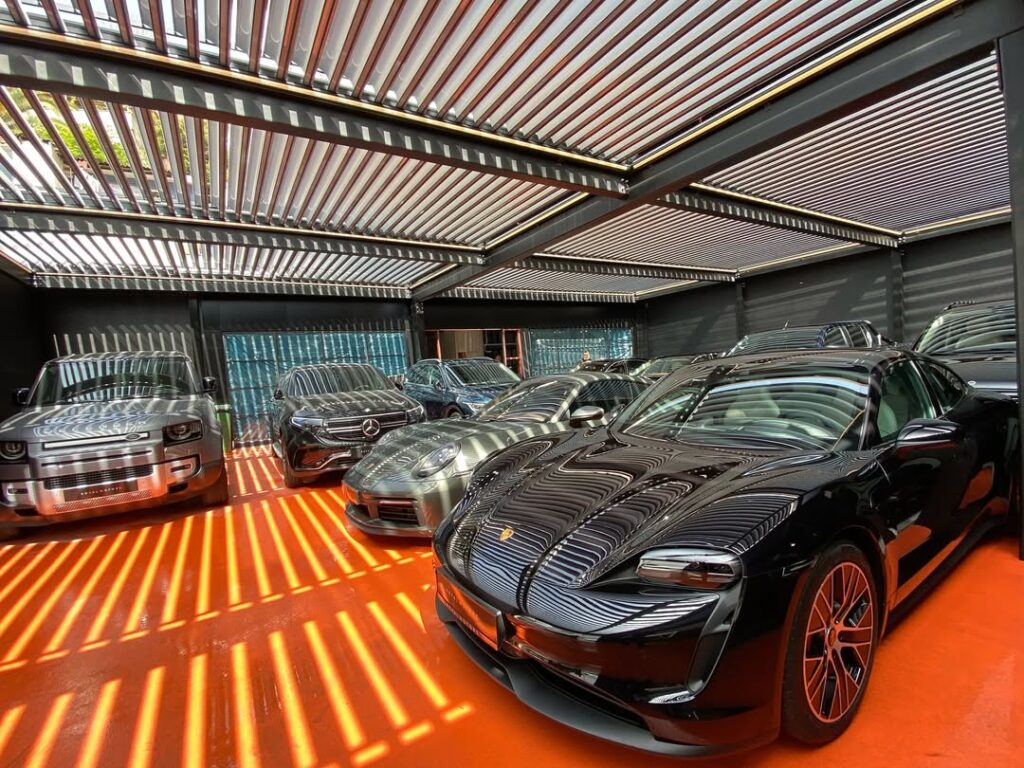 Unlike conventional parking structures, motorized pergolas provide both flexibility and intelligent shading control.